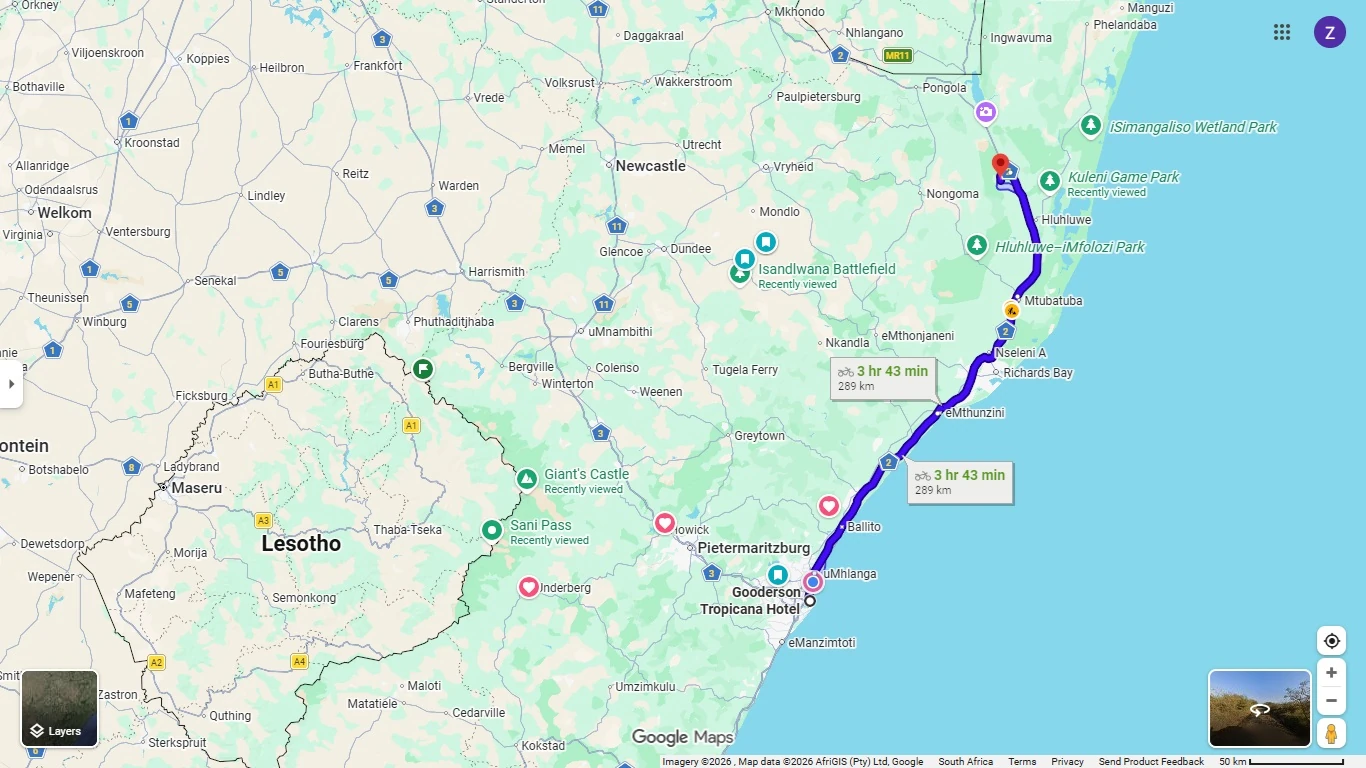 The tour departs from Durban heading northward along the coast to northern KwaZulu-Natal. The first stop is Bayete Zulu in the Zululand Rhino Reserve for Elephant Interaction and after that we will visit Hluhluwe Imfolozi Game Reserve in search of Big 5 in closed vehicle game drive.
