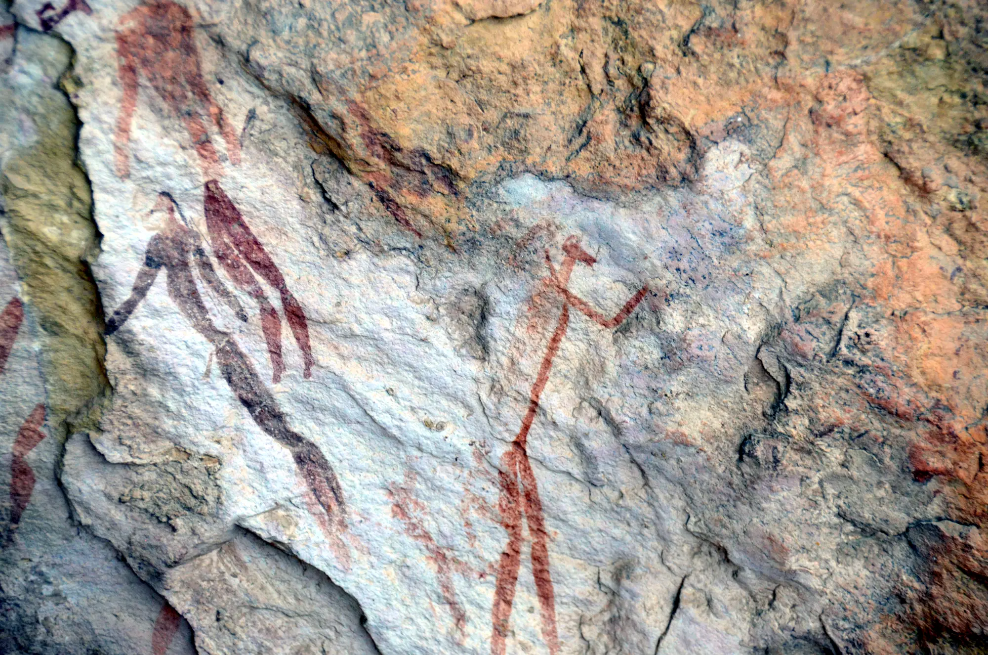Giant’s Castle Reserve has a set of sandstone caves which have been turned into an outdoor museum. The San Rock Art depicts life of the San and Khoekhoe people who lived in South Africa for 1000s of years before Bantu and European migration. Both considered ‘hunters and gatherers’, the San were more nomadic that the Khoekhoe, who started to herd cattle when introduced by the bantu people who migrated from central Africa. The San and the Khoekhoe used rock art to communicate their story between clans and people.