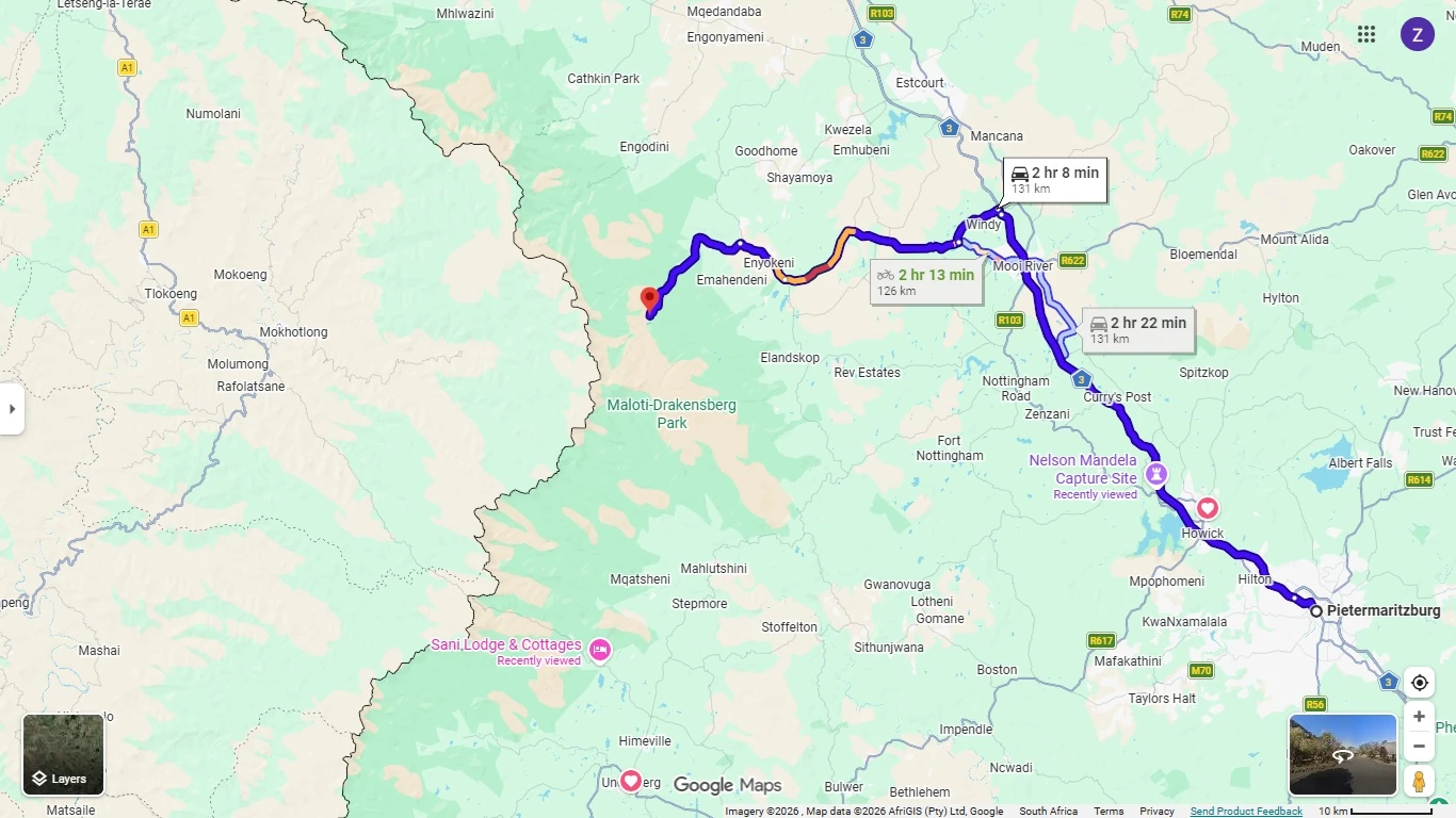 DEPARTURE/RETURN LOCATION: Pick up and drop off service within a 5km radius of Pietermaritzburg Central