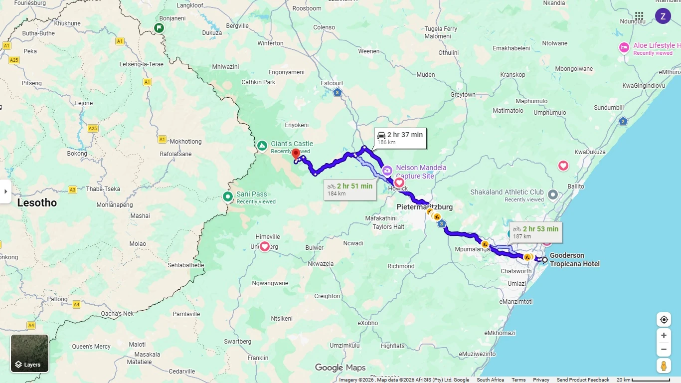 We depart from Durban and head towards Pietermaritzburg en route to Kamberg Reserve in Drakensburg Mountain range. Kamberg forms part of the Maloti-Drakensberg Park World Heritage Site and is situated centrally in the foothills of the mountains...