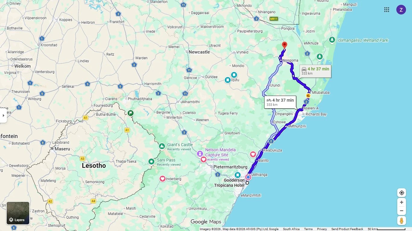 - Pickup & drop off service with in a 5km radius of our meeting point at Gooderson Tropicana Hotel, 85 OR Tambo Parade, Durban. If you are out of our pickup radius, special arrangements can be made to pick you up at your location of choice