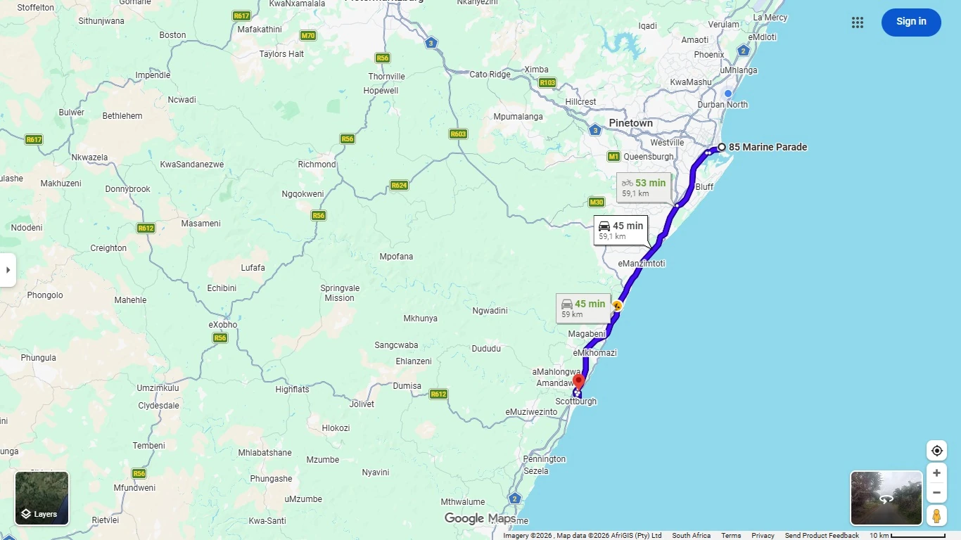- Pickup & drop off service with in a 5km radius of our meeting point at Gooderson Tropicana Hotel, 85 OR Tambo Parade, Durban. If you are out of our pickup radius, special arrangements can be made to pick you up at your location of choice