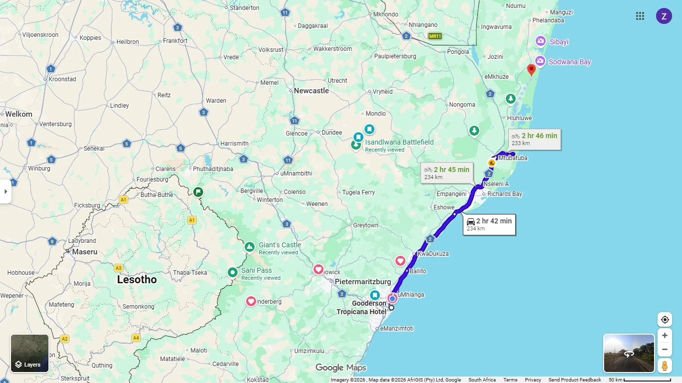 - Pickup & drop off service with in a 5km radius of our meeting point at Gooderson Tropicana Hotel, 85 OR Tambo Parade, Durban. If you are out of our pickup radius, special arrangements can be made to pick you up at your location of choice