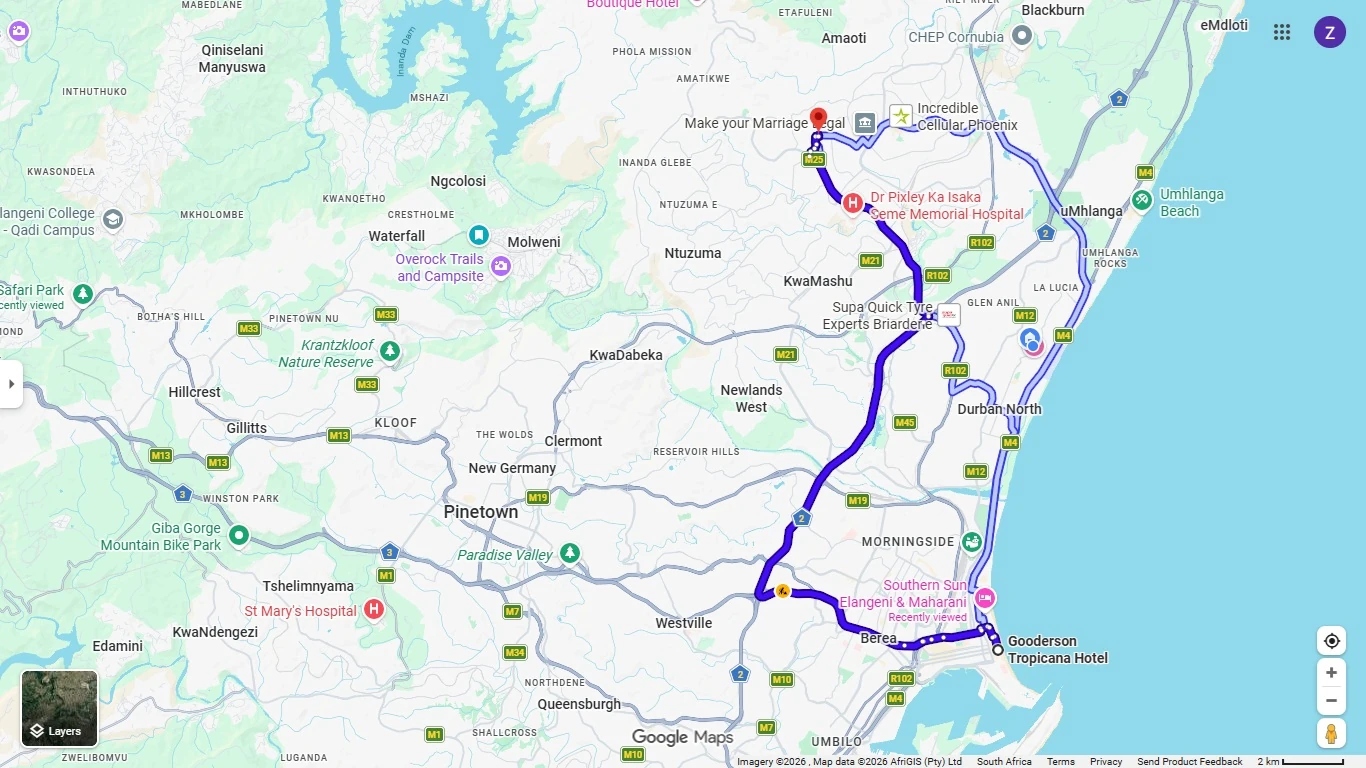 - Pickup & drop off service with in a 5km radius of our meeting point at Gooderson Tropicana Hotel, 85 OR Tambo Parade, Durban. If you are out of our pickup radius, special arrangements can be made to pick you up at your location of choice